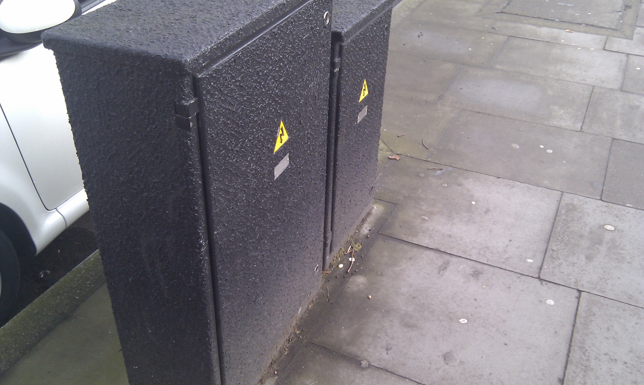 Artex isn’t just difficult to paint … when it’s combined with the right chemicals, it’s actually impossible to mark in any way, making it a natural anti-graffiti measure which is why you’ll soon start noticing it more when you’re out and about. With the rather sudden proliferation of digital, internet and television services popping up all over the land, it’s not just the roads that are being dug up, but the pavements as well. You’ll see more and more of those drab steel engineering stations now you’ve read this. They’re every twenty or thirty metres in urban areas now, and not far short in the suburbs and villages, once broadband is rolled out to them. Those little grey boxes you walk past every day. You know the ones …