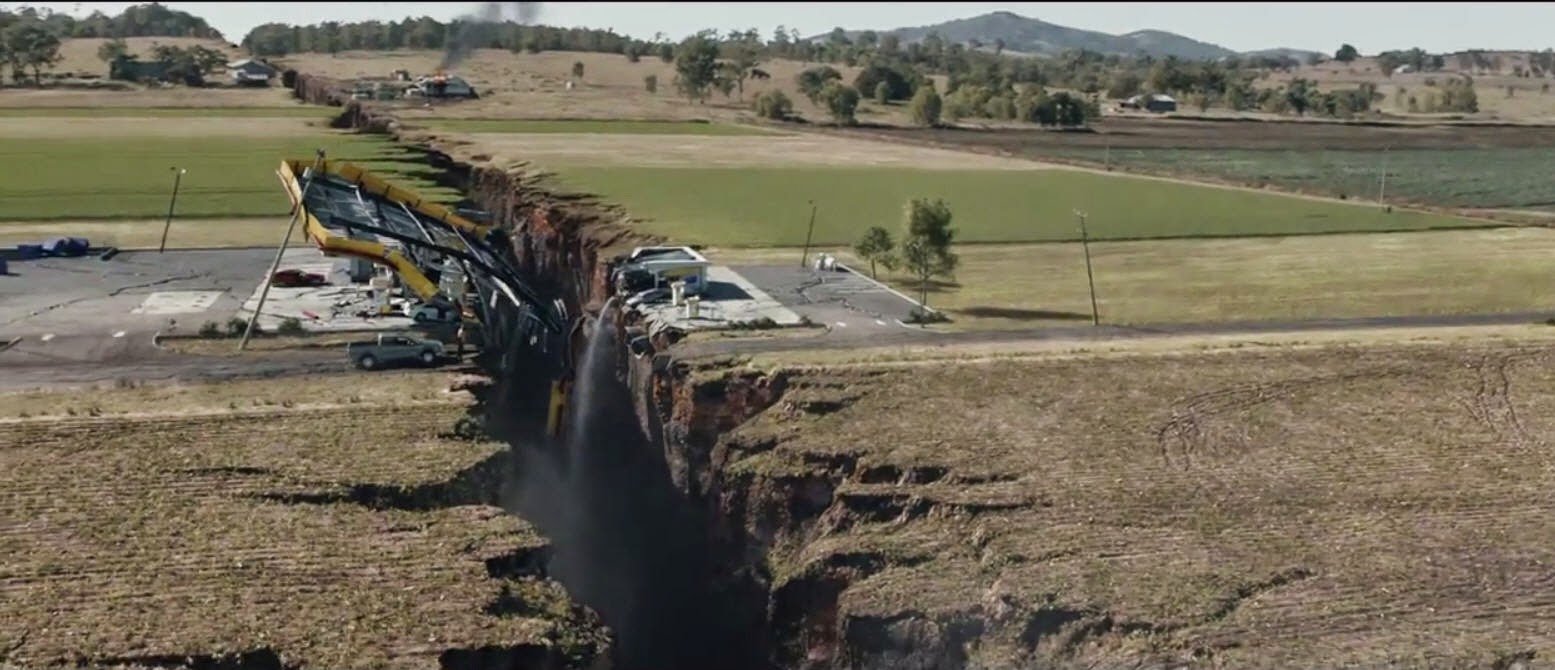 Like a car crash writ large, you can’t take your eyes off it and that’s from the comfort of a cinema seat back in Blighty where earthquakes rarely do anything more than rouse us into making jokes about the earth moving in other ways.