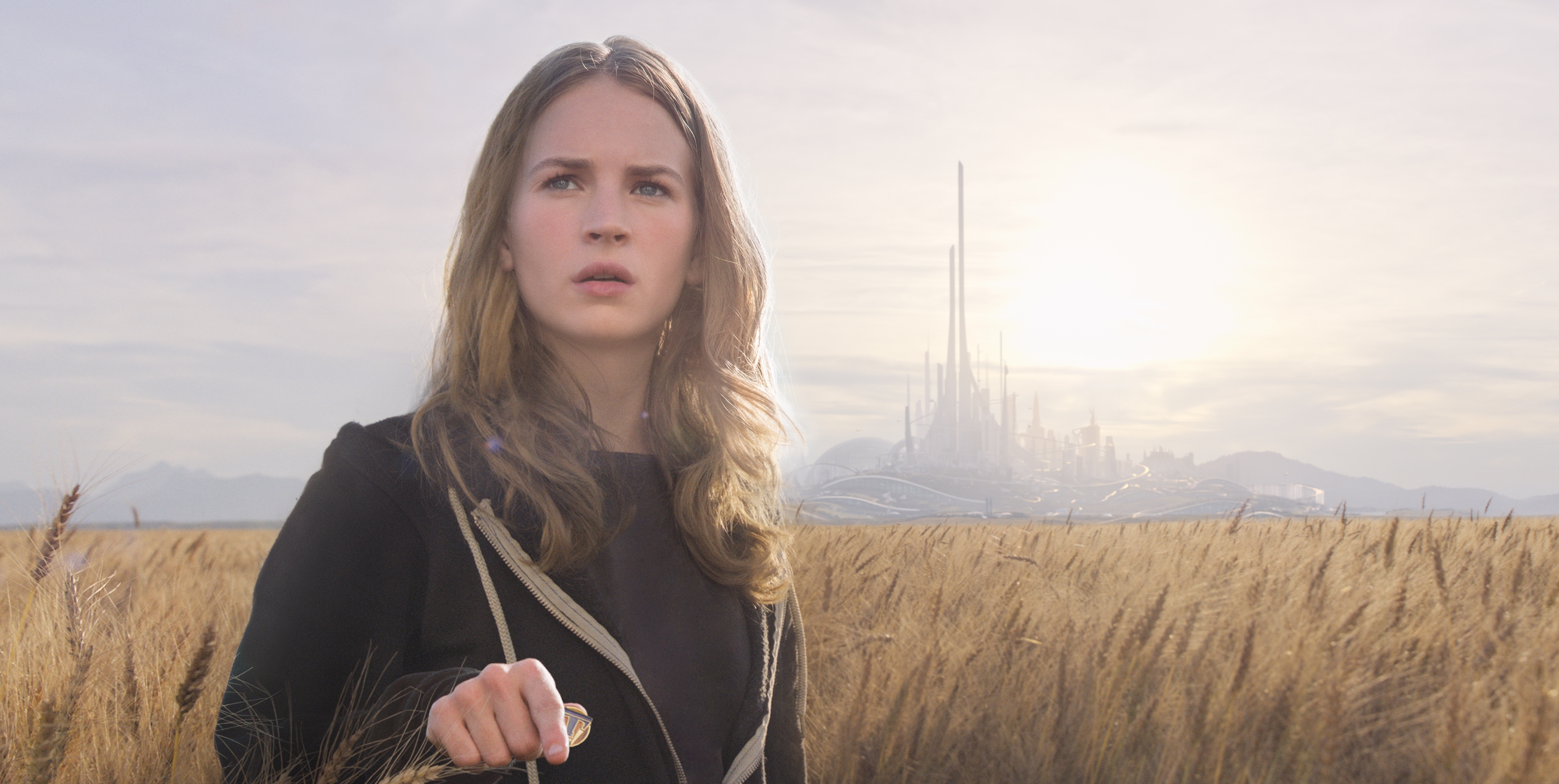 The two sides of the Tomorrowland tale are brought together when Casey discovers a pin badge that somehow transports her to another place (and time?) when she touches it.