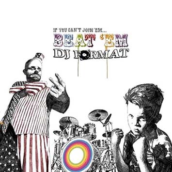 When DJ Format landed a job as a driver for US rap stars Jurassic 5, he probably didn’t expect it to catapult his own material into the limelight with quite such gusto or lightning speed. After various remix requests and inclusion of tracks on various highly-regarded compilations, his debut EP released in 2002 and was promptly followed by his first full album release, 2003’s excellent Music for the Mature B-Boy. Contributing to the appeal of DJ Format are his insistence on videos cooler than the proverbial cucumber and energetic live performances and DJ sets spanning dingy student unions to festival stages that have included Leeds and Glastonbury. Perhaps reflecting this versatility is the make up of DJ Format’s fan base : a combination of geeky, sample-spotting 80s hip hop enthusiasts and the more uninitiated, trendy types who marvel at MC Abdominal and D-Sisive’s lyrical dexterity and DJ Format’s seeming ambidexterity on the decks. The album has a funk-injected flavour which brings with it a dancefloor vibe that is somewhat overshadowed by the vocal performances from Abdominal, D-Sisive and Jurassic 5’s Chali and Akil. Of the twelve tracks comprising If You Can’t Join ‘Em… Beat ‘Em, the most charismatic are in fact the three instrumentals which showcase DJ Format as both a crafty producer, and, with their unmasked cuts and scratches, an immensely talented turntablist. Particularly worthy of mention is ‘Black Cloud’, a plodding little thing, perhaps the ugly duckling of the album, but all the more beautiful in its relative obscurity with its emotive percussion and brassy awkwardness. “Coming in tighter than a Venus Fly-Trap” is Rap Machine a track so bloomin’ funky that it conjures up images of attractive people breakdancing in a NYC alleyway. Whilst I do prefer the instrumentals generally, the nine tracks with lyrical flows are, much like DJ Format’s earlier material, both witty and inspiring. In places they beg the listener to sing-along, in others they render him or her bewildered at the speed and panache with which these guys can spit words. Several of the tracks are plain funny. ‘Ugly Brothers’, for example, features MC Abdominal discussing his and Format’s sympathy with ugly fans. And so the chorus goes: “I got a sister, she’s hot / And quite frankly, I’m not / For those of you who might be a bit dumber / That makes me her ugly brother!” In sum, ‘If You can’t Join ‘Em… Beat ‘Em’ is refreshingly low-brow and astonishingly infectious.