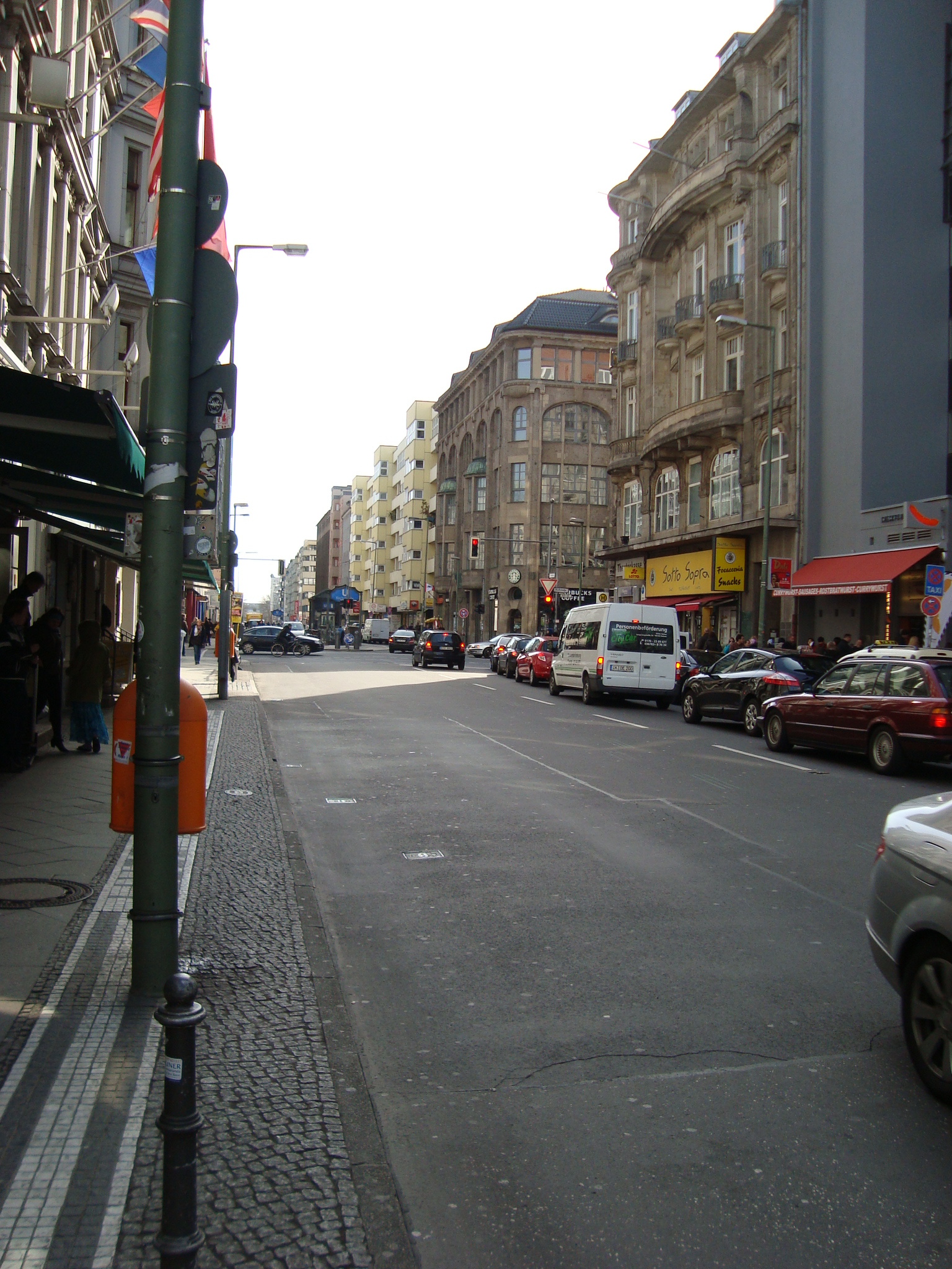 Look further down the street, deeper in den Osten, and you can clearly see the stark contrast of the more functional architecture that marks out the communist half of the capital: