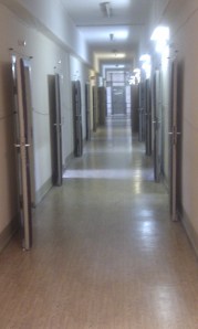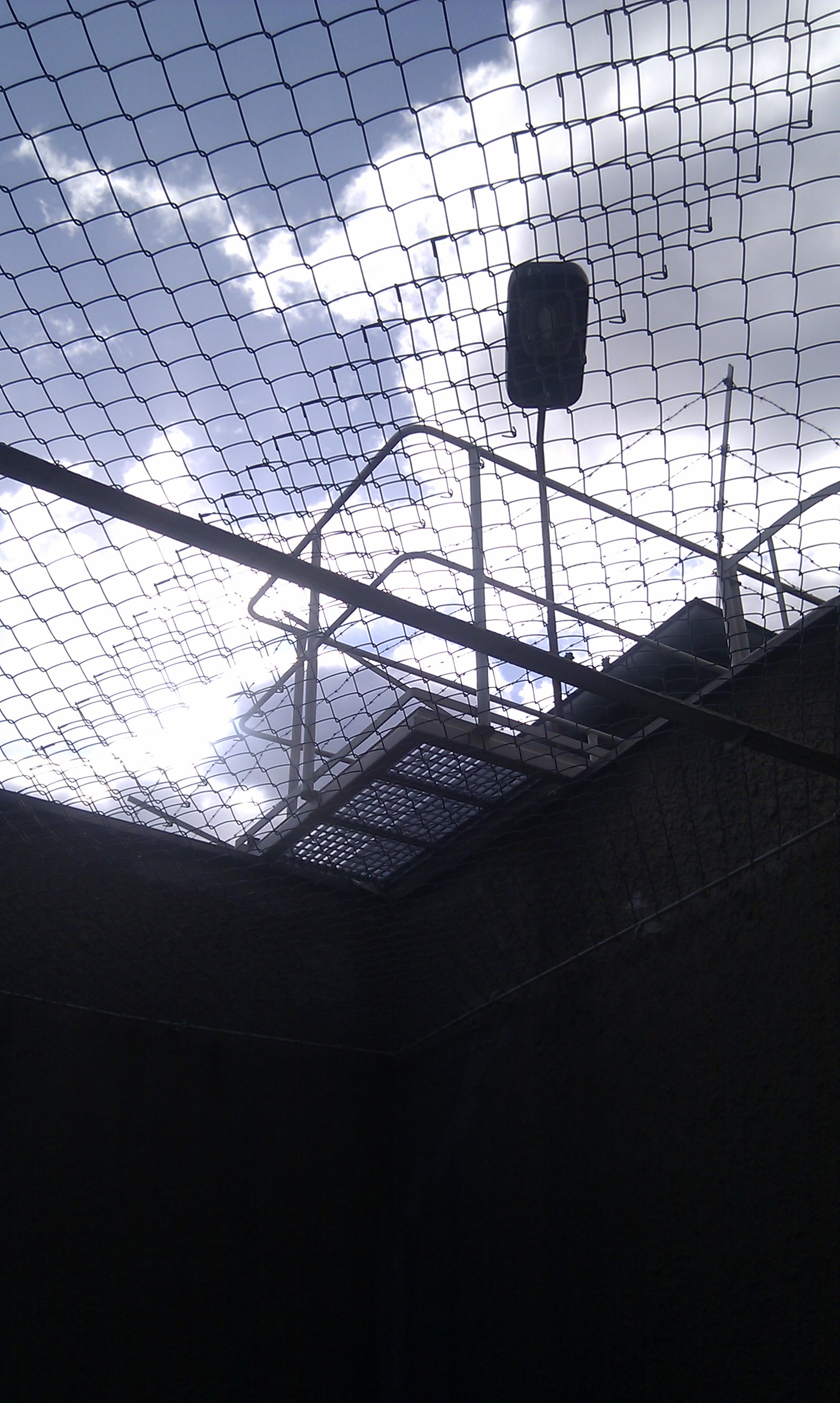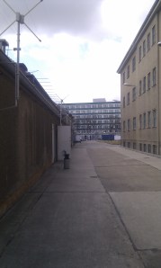 The view from inside one of the small exercise areas known as the “Tiger’s Cage” because all you were allowed to do was prowl around – strictly no running and it was always a solitary activity: