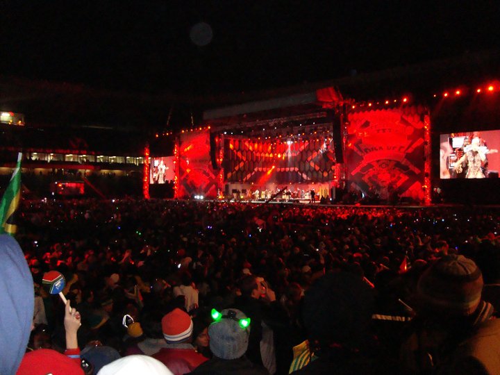Whilst in South Africa for the World Cup, my very good friend, Stuart Scott, was lucky enough to be able to get a bunch of complimentary tickets for the opening concert and as he was staying at my sister’s house in Jo’burg, who better to take along ?